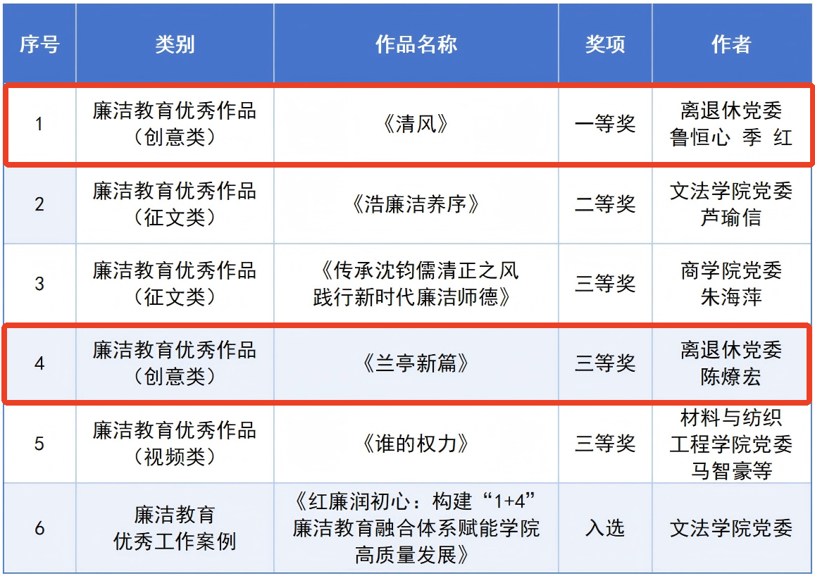 此次《清风》和《兰亭新篇》喜获省级奖项,既是对老同志艺术造诣与廉洁情怀的高度认可,更是离退休党委和离退休工作处扎实推进廉洁文化建设、引领老同志发挥余热的生动实践。一直以来,离退休党委始终注重将廉洁教育融入老同志日常管理服务与文化活动,通过组织廉洁主题书画展、诗歌分享会、专题学习等形式,引导广大老同志离岗不离党、退休不褪色,持续发挥政治引领、经验传承、示范带动作用,为学校清廉示范校建设注入银发动能。