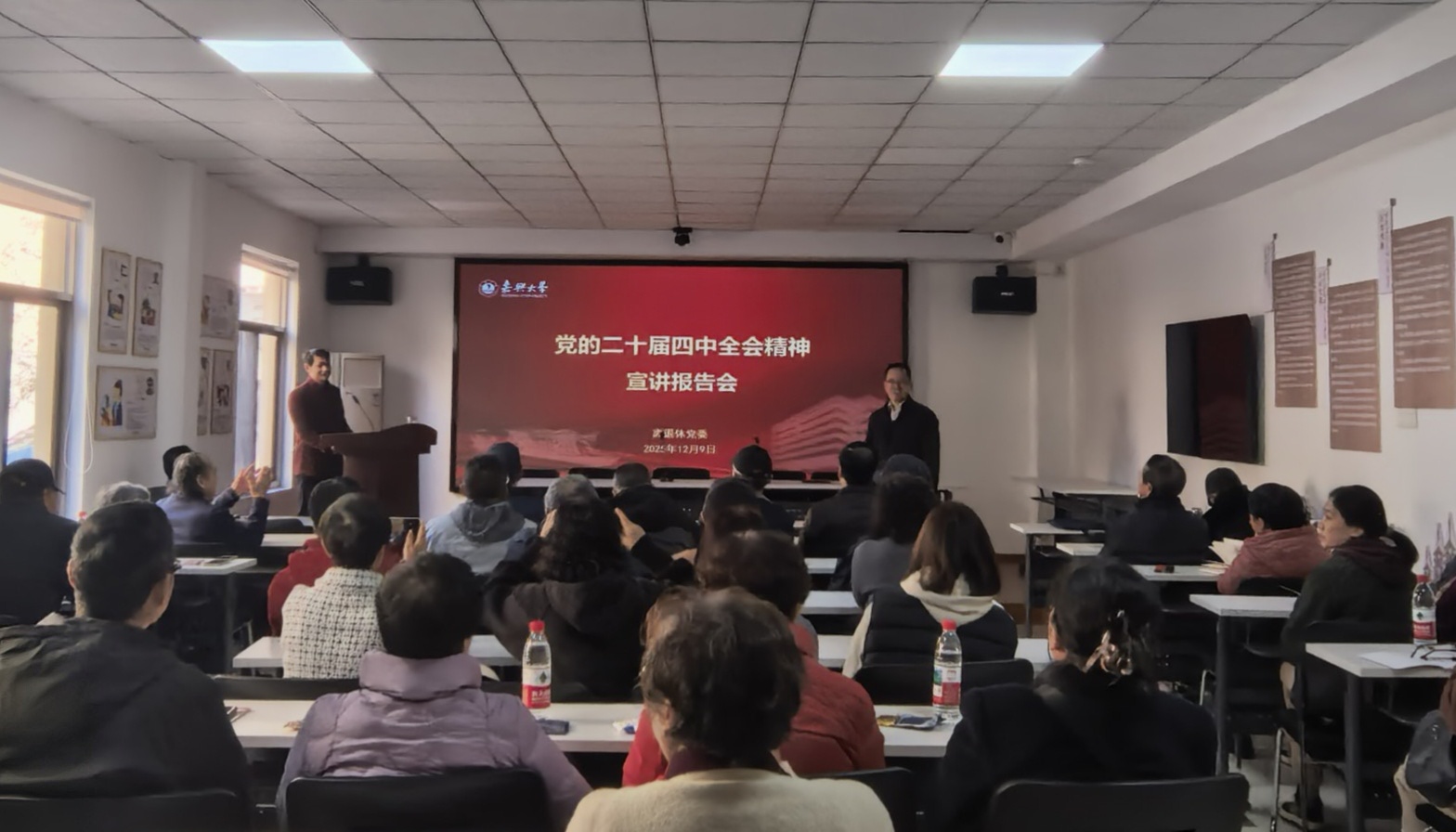 为深入学习宣传贯彻党的二十届四中全会精神,12月9日上午,离退休党委在文南里老年活动中心举办专题宣讲报告会。我校马克思主义学院李庆喜副教授作主讲报告,离退休党委委员、支部书记、支部委员、离退休党员代表等参加报告会。离退休党委书记韩宝明主持会议。